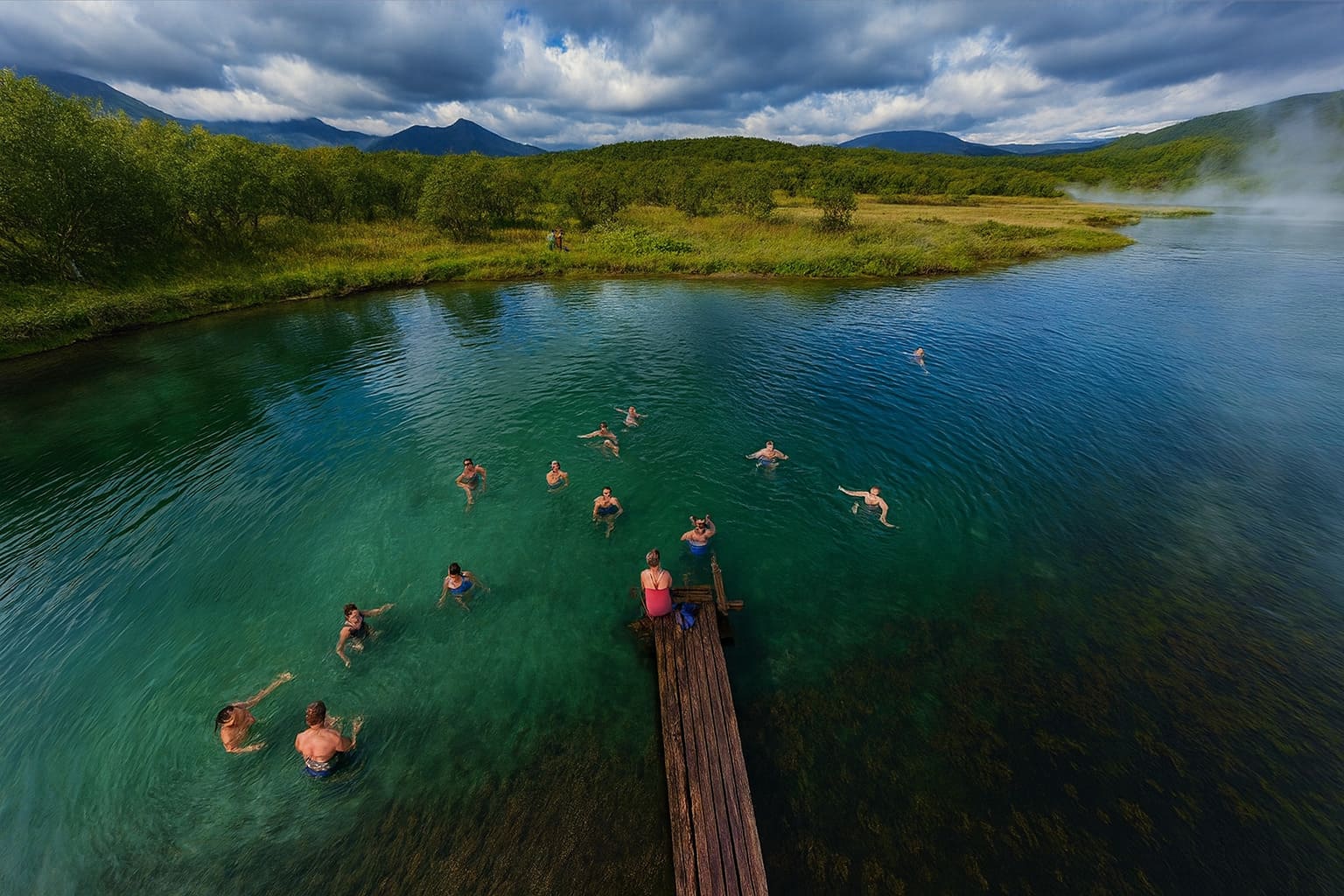 Ходуткинские термальные источники у подножия вулкана Ходутка на Камчатке — это природный спа-комплекс мирового уровня. Здесь кипящая энергия земли буквально встречается с тишиной берёзовых лесов: горячая река шириной в несколько десятков метров несёт свои воды сквозь вулканический ландшафт, образуя уникальную купель, где температура держится комфортной — 42–44 °C. Для туриста это не только релакс, но и редкая возможность прикоснуться к геологическим процессам, которые формировали полуостров тысячелетиями.
