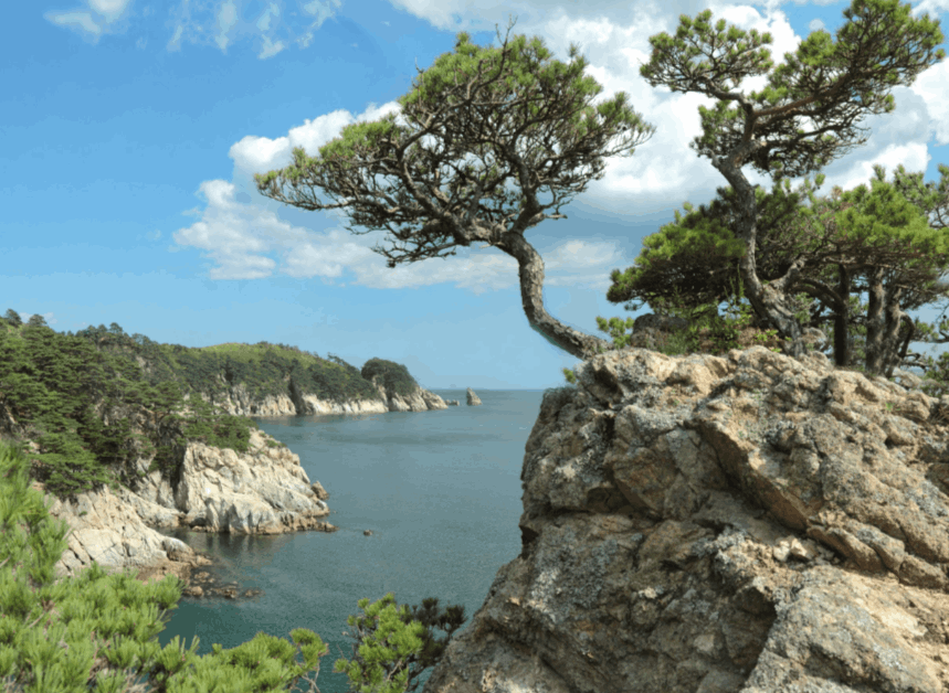 Бухта Теляковского признана одним из наиболее живописных уголков Японского побережья. Ее береговая линия представлена скалистыми образованиями, обрамленными густыми сосновыми рощами. Место притягивает ценителей уединенного отдыха, путешественников, фотографов.
